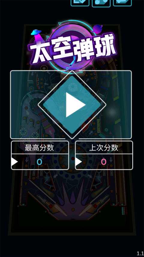 1、打开游戏,页面上会显示游戏的名称、最高分数、上次分数和游戏开启按钮,点击中间的三角形图标。