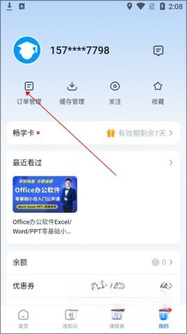 2、进入订单管理页面,找到要申请退款的课程,长按该课程会弹出操作选项,选择并点击“取消报名”即可。