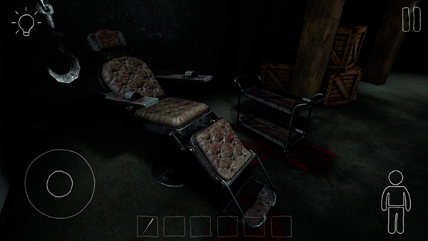 沉浸式恐怖场景:以阴森房屋为核心场景,辅以血迹斑驳的墙面、昏暗摇曳的灯光等细节,再配合若隐若现的脚步声、门窗吱呀的异响等动态音效,构建出极具压迫感的恐怖氛围。随着剧情展开,玩家将从初始的囚笼房间出发,逐步探索至带有壁炉的房间、户外等不同区域,每个区域都设有专属机关与隐藏线索——例如墙板玻璃柜中藏着的钥匙、桌子下方放置的橡胶手套等。