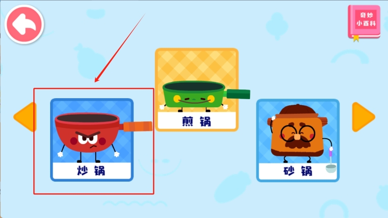 进入游戏后,宝宝就能挑选自己喜爱的厨具来开启美食制作之旅啦,不同的厨具能做出不一样的美食呢。