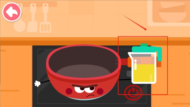 4、开始做菜后,小厨具就会自己开火,让宝宝将调料和食材倒入即可。