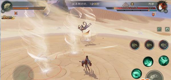 作为土系BOSS,阿渺的血量达到20万,它会每隔一段时间召唤蜃气妖,与自己配合攻击玩家。不过,一旦蜃气妖被消灭,阿渺的攻击力就会下降。此外,阿渺释放冲刺技能时,地面会留下三个龙卷风,这些龙卷风会在战场上持续8秒,玩家处于龙卷风范围内时,妖气会被慢慢吸走。所以,首先建议玩家选用木系妖灵,因为木系与土系属性相克,能打出更高输出;其次要优先快速清理蜃气妖,这样才能减少阿渺造成的大量伤害;最后则要尽量避开龙卷风,或者携带妖气获取效率高的妖灵来及时补充妖气。