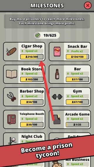 2、业务逐步拓展:从小贩起步,逐步成长为监狱大亨。通过完成各类任务获取金币,解锁更多盈利项目,比如为囚犯望风、和狱警合作进货等,以此实现收益的逐步提升。