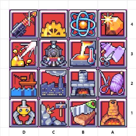 这些技能涵盖冶炼、勇猛、密谋以及物理(发电厂可提升工作效率)。