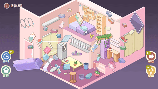 面对乱糟糟的房间,想必你也很难安心投入工作吧?不妨试着收集各式各样的家居好物,把它们布置在最恰当的位置;同时解锁并学习制作不同的美食。到了更具挑战的关卡,你得绞尽脑汁赚更多钱——收纳速度越快,能争取到的时间也就越多!