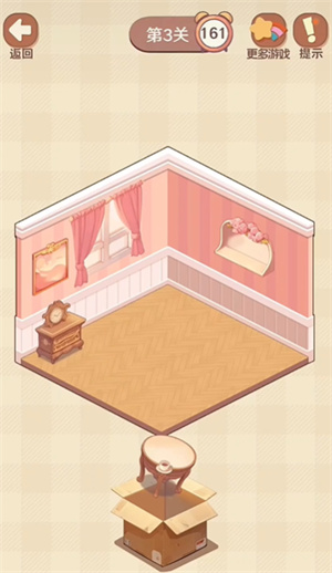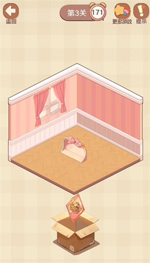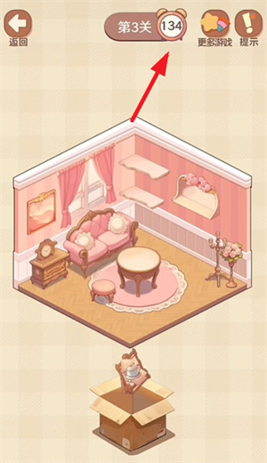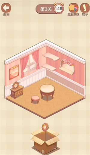 点击纸箱后,会出现许多待摆放的物品,我们只需把这些物品放到房间里对应的正确位置。等所有物品都摆放完毕,这一关就算通过了。不过需要注意的是,时间是唯一的限制因素,我们得在规定时间内完成所有操作才行。