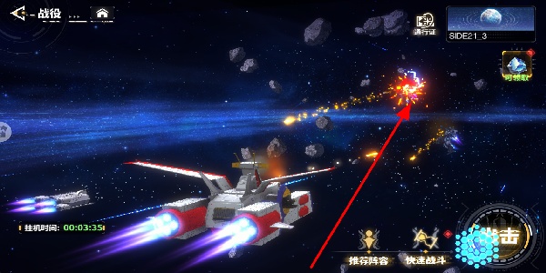 1、战舰选择挂机自动攻击轻松获取资源,也能排除机甲主动点击出击,在浩瀚太空场景中与敌人激烈战斗。