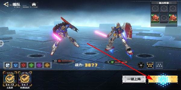 2、使用一键上阵功能,快速派出多架机甲参与战斗,高效组建强大战斗队伍,从容应对敌方的猛烈攻击。