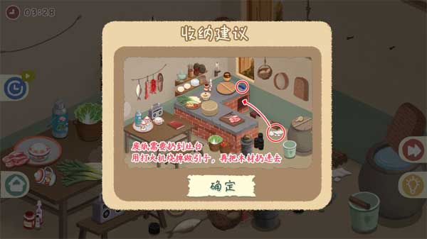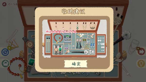 进入关卡后,就可以着手收纳了。要是到了后面不清楚该如何收纳,你可以点击右下角的提示按钮,参照给出的收纳建议来完成收纳操作。