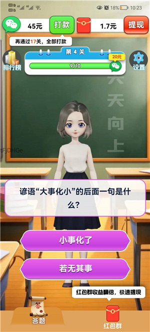 3、每天都能体验答题玩法,操作始终十分休闲,只需轻点屏幕就能选择正确选项。