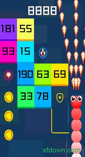 1. 滑动屏幕操控蛇蛇,让它喷射火球以消灭不同颜色的方块。