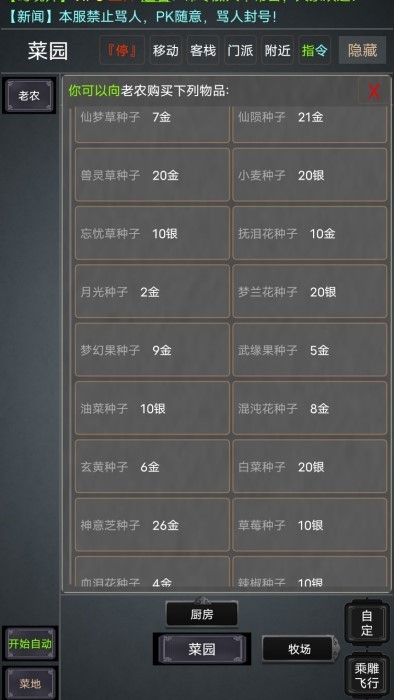 自在江湖还有个别称叫种地江湖,因为游戏里所有能强化角色的道具,都能通过种植植物再进行炼制来获取。