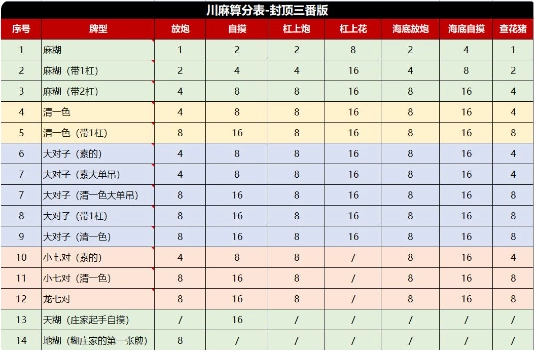 四川麻将血战算番图表