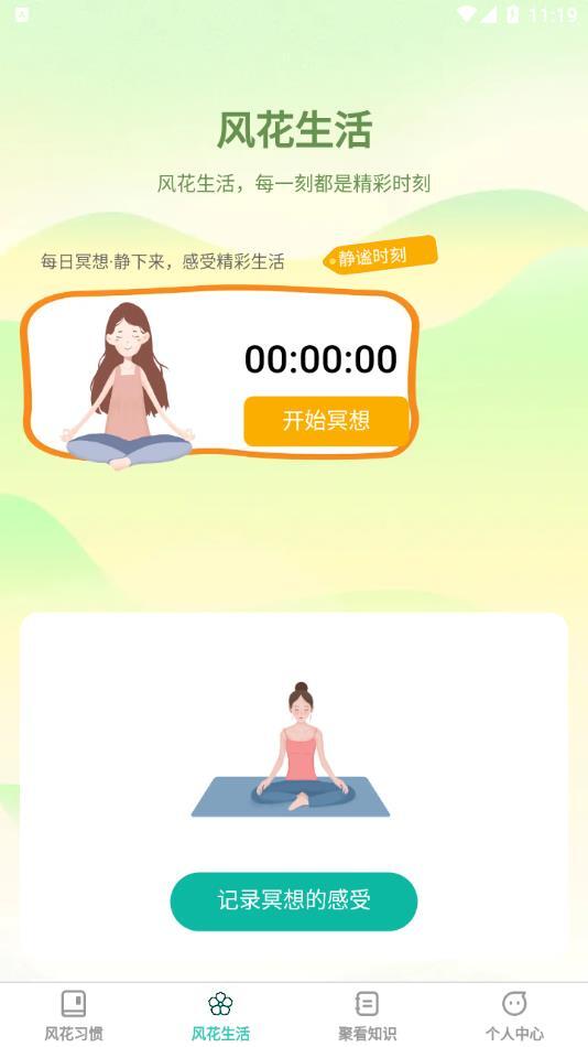3、点击风花生活,每天冥想静下来,感受精彩生活。