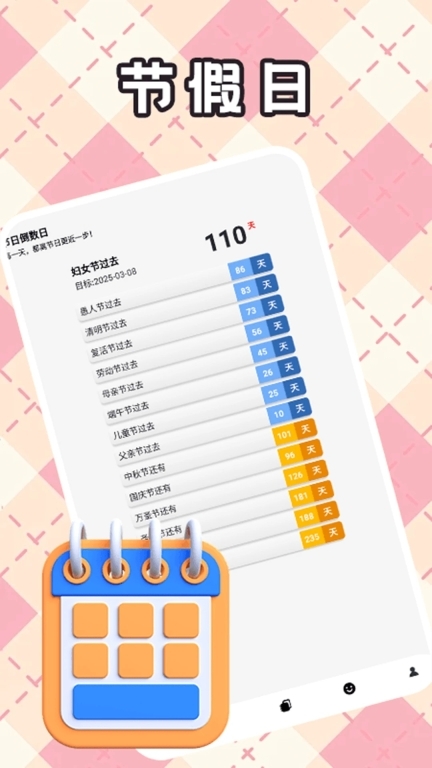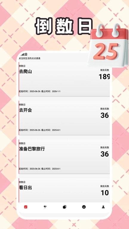 1、以趣味为表、实用为里的工具集合:精准倒数日、节日倒数日、日记本与今日心情记录。