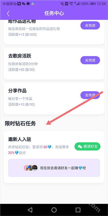 4、还可下拉该页面至底部,会有限时钻石任务,用户完成该任务可能直接获得钻石