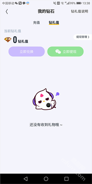1、用户在光音里可将收到的钻石礼物按特定比例换算成钻礼值,该钻礼值支持提现操作。