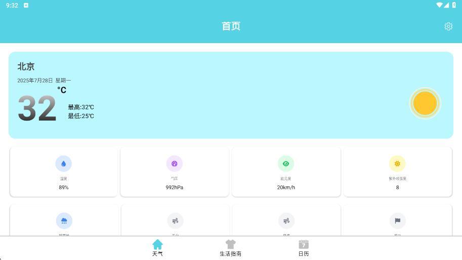 1、安装以后进入,自动定位,让你知晓本地温度、空气湿度等气象数据。
