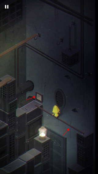 7、摩诺通过楼梯往下爬时,急等将左边箭头指向的窗户关掉。