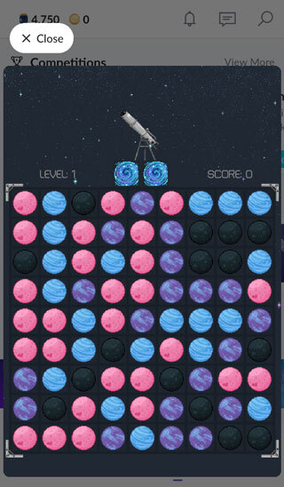 2、中间区域的小游戏能获取星尘,我个人更推荐2048和星球消消乐这两款。消消乐这游戏,要是一局没通过就给100星尘,通过了则能拿到300星尘,这两个小游戏相对来说更容易攒星尘。