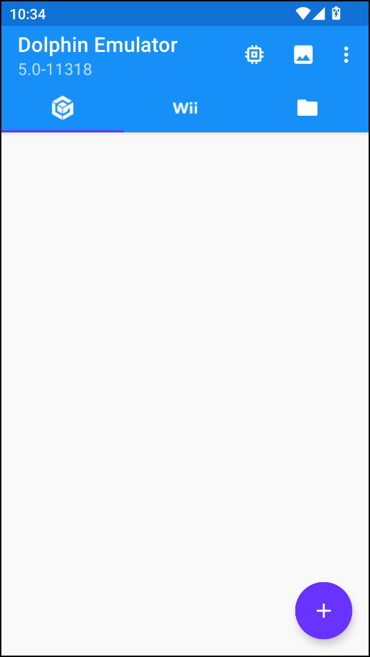 1、游戏解压缩完成后,我们会看到整合了游戏资源包的海豚模拟器,此时点击模拟器右下角的加号即可。