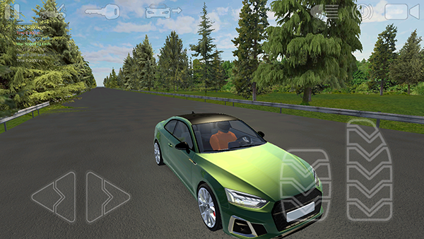 4、进入游戏后,通过使用右边方向盘来操控汽车的方向,右边分别操控汽车的倒退和前进