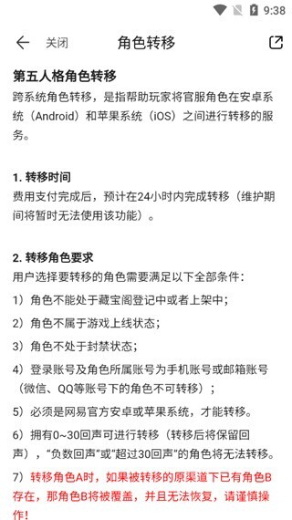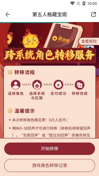 2、点进角色转移板块,点击开始转移,完成转移流程就可以了