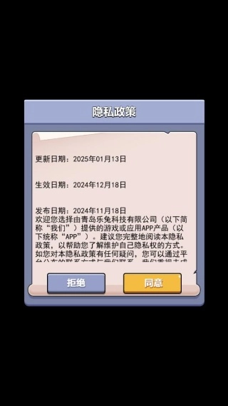 1.在进入游戏前,你需要先同意相关的隐私政策。