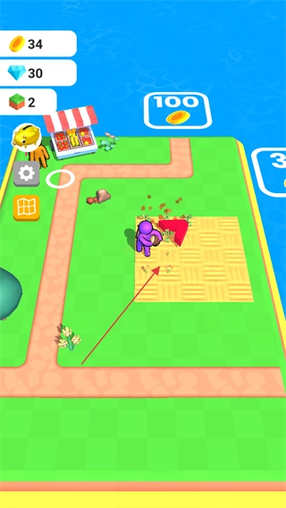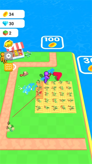 2、操控紫色角色在农田中开垦土地,为种植作物做准备。