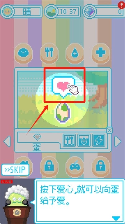 1、点击爱心,向蛋给予爱。