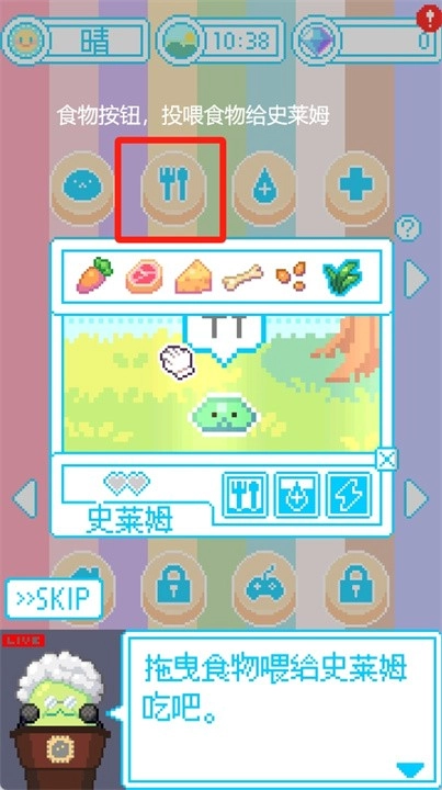 3、点击食物按钮,投喂食物给史莱姆。