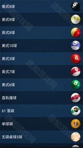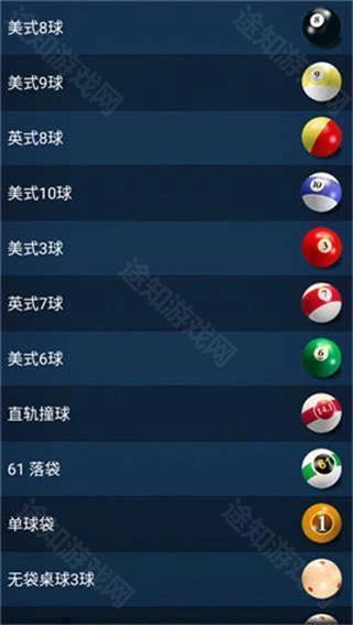 游戏内的玩法模式十分丰富,涵盖美式台球、斯诺克、开伦台球等多种类型。