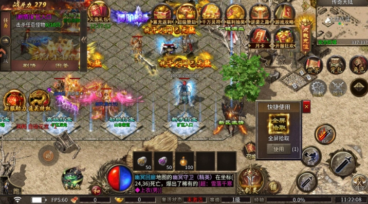 烈火剑法:战士的爆发技能,蓄力后能打出高额的魔法伤害和物理伤害,通常是 PK 时的主要秒人手段。