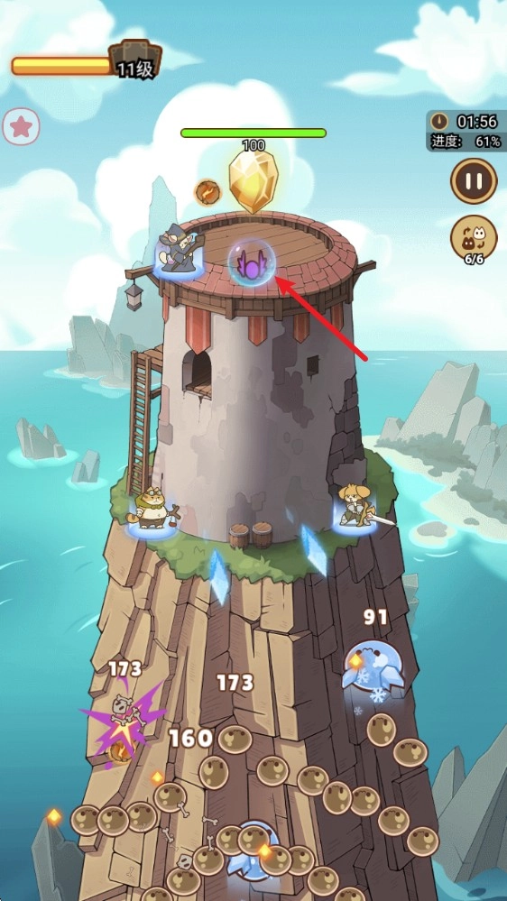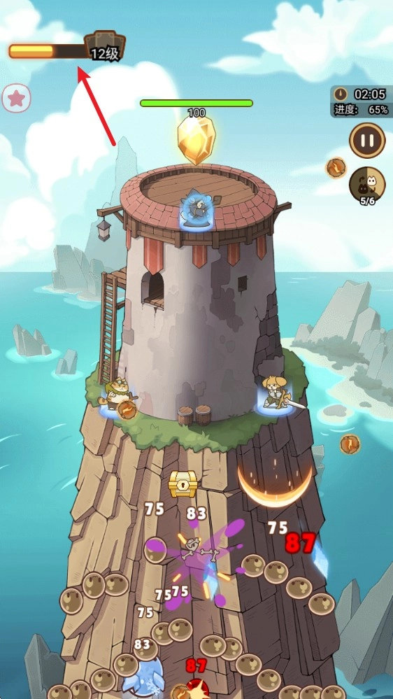 3、卡通画面设计让玩家有更好的竞技作战体验,策略猫咪爬塔闯关