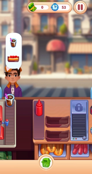 1、点击开始按钮接收顾客订单,依据顾客的需求迅速制作餐品,像可乐搭配小吃这样的组合餐品就需要快速完成。