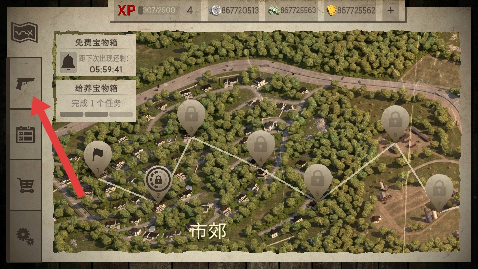 1、点击左侧的枪械图标,进入武器界面后,就能查看并管理自己目前持有的武器。