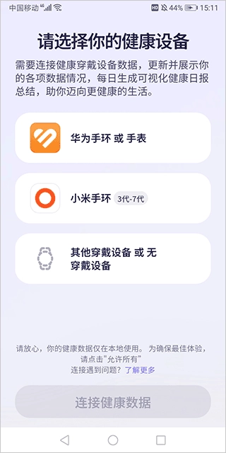 1、通过微信登录后,可直接选择华为手表或小米手环对应的连接渠道进行点击操作。