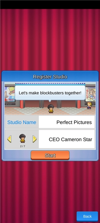 1、安装好电影工坊物语最新版之后,打开进入游戏,点击游戏中的Start;