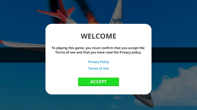 1、游戏启动后,阅读并确认《使用条款》和《隐私政策》,点击“ACCEPT”进入游戏。
