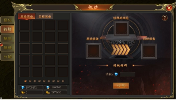 3、转移:将材料装备的精炼等级转移到目标装备。