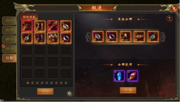 4、分解:无法进行回收的装备可以通过分解获得材料。