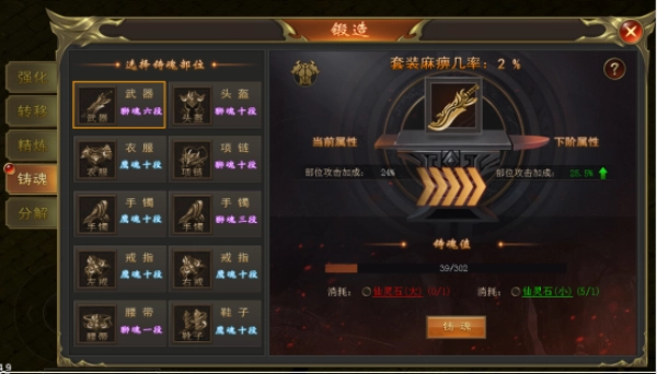 5、铸魂:通过铸魂提高人物的攻击力和防御力。