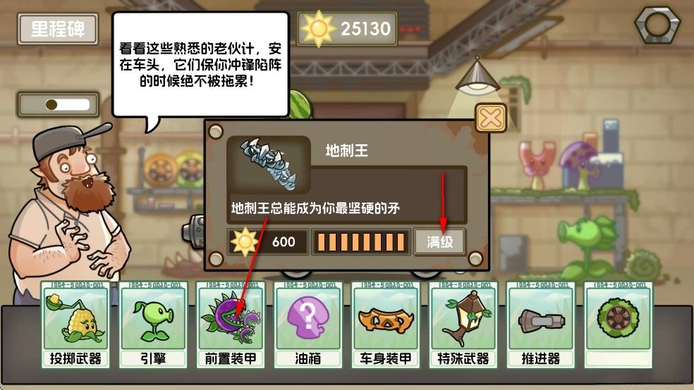 点击【前置装甲】,可以升到满级