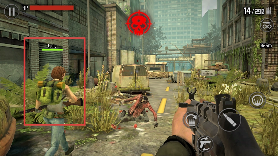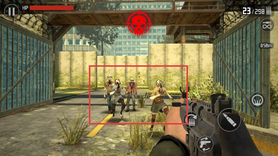4、瞄准敌人,利用武器射击,消灭僵尸,推进关卡进程,获取奖励。