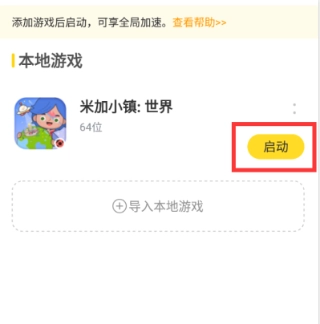 2、进入加速器首页后,在界面中找到 “导入本地游戏” 按钮,点击该按钮准备添加游戏;