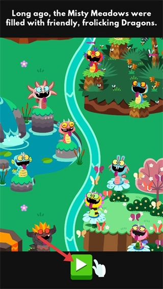 1、点击主界面上的绿色播放按钮,进入迷雾草原,探索龙的栖息地。
