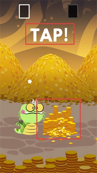 3、在金币堆的场景中,点击屏幕上的【TAP】按钮,帮助小龙收集金币。