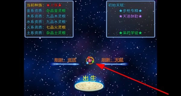 1、刷新自身的资质与天赋,挑选与之契合的种族及初始天赋,点击出生按钮,正式开启这段满是未知的修仙旅程。