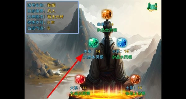 2、查看自身金、木、水、火、土系资源,清晰了解各属性情况,为后续修仙修炼做好充分准备。