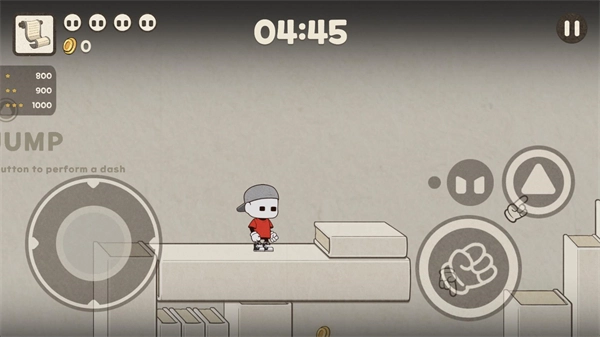 3、正式开始后左边控制角色的移动,右边是跳跃,攻击和技能按键。